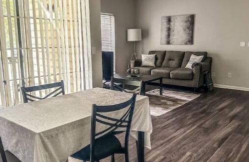 Welcome to our charming 1-bedroom apartment near The Domain in Austin, Texas. With a classic and modern design, it's perfect for up to 3 guests. Relax in the inviting living space with comfortable seating and a flat-screen TV. Rest peacefully in the cozy bedroom with a queen-sized bed. The bathroom is sleek and modern with all necessary amenities. Stay connected with high-speed Wi-Fi and enjoy convenient parking. The location offers shopping, dining and entertainment.