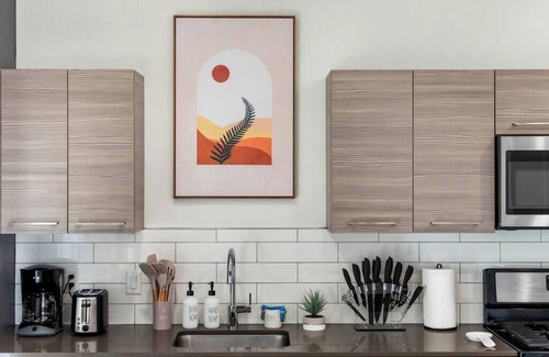 Experience luxury in our spacious apartment located in the heart of SLC. Enjoy stunning mountain views from the open floor plan and modern bohemian decor of the spacious living area with a large flat-screen TV. The fully equipped kitchen and en-suite bathroom with a luxurious shower make your stay comfortable. The central location puts you just steps away from restaurants, bars, entertainment venues, university, hospitals and convention centers. Book now and enjoy the best of Salt Lake City.