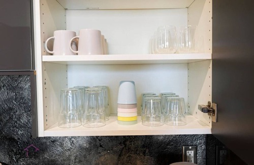 Equipped with a washer and dryer. It also features complimentary supplies such as detergent, iron, and ironing board. Enjoy a hassle-free laundry experience with all the conveniences you need for a night out in town!