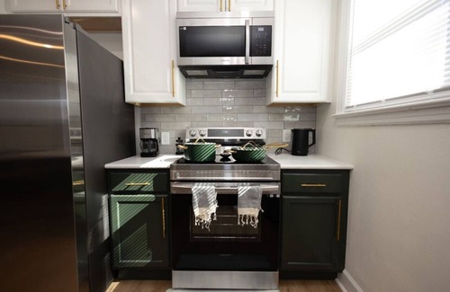 Discover Urbane Luxury in our recently renovated house, nestled in the heart of the city. Our well-equipped abode features two spacious bedrooms with king-size beds, a newly renovated bathroom, and a fully stocked kitchen. The chic decor and modern furnishings create a cozy atmosphere for your stay. Centrally located, you'll have access to off-street parking with convenience is at your doorstep. Whether for business or leisure, relish the perfect combination of style, luxury, and comfort.