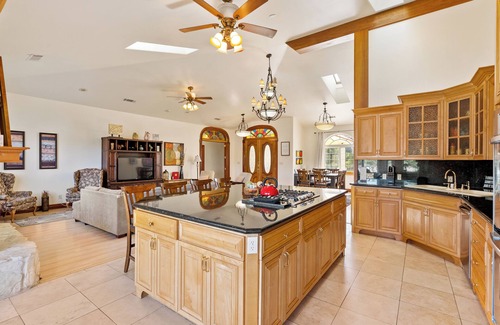 Nestled within a newly planted vineyard, Uvae Vineyard invites you and your group to indulge in spacious and elegant living. Only a 15-minute drive from town and a mere two minutes from the nearest winery, Beruli Vineyards, this serene retreat offers the perfect blend of convenience and tranquility. The timeless Great room layout facilitates quality time spent together, whether you're preparing a meal in the generous kitchen or unwinding in front of the expansive flat-screen TV. Cathedral ceilings soar overhead, enhancing the air of sophistication and vastness. Step outside onto the sprawling front patio to savor a delightful dinner paired with local wine or simply bask in the shade and soak up the peaceful ambiance. Accommodating up to 10 guests across four bedrooms, this residence boasts three full bathrooms for added comfort – be sure to luxuriate in one of the jetted tubs for the ultimate relaxation. Each room offers picturesque views through large windows that flood the space with natural light and showcase the beautiful surroundings. Make lasting memories at Uvae Vineyard, an idyllic setting for gatherings with loved ones in the heart of Paso Robles Wine Country. County Permit # 6005011