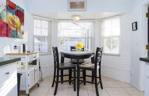 A beachy style luxury vacation home just 2 miles from the beach with heated pool with spillover spa (not a hot tub) Pool is heated during fall/winter months, spa not heated separately. Beautifully furnished and located minutes from the beaches, restaurants, grocery stores and much more! This is a 2 bedroom/ 2 bathroom house with 1 queen sized bed, 1 full sized bed and king bed in the master suite. Full kitchen, 2 car garage, washer and dryer, Wifi, outdoor shower, grill and lounge chairs to hang around the pool. You will feel right at home!