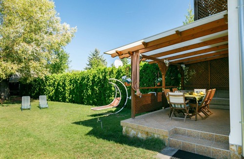 Zamárdi 12 km from Siófok: Beautiful semi-detached house "Aurora", built in 2007. In a sunny position, 200 m from the lake, 800 m from the beach. Private: property 200 m2, lawn for sunbathing. In the house: washing machine. Grocery, restaurant 150 m, grass beach 200 m. Object suitable for 6 adults + 1 child. Please note: railway line closeby.