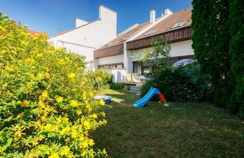 Zamárdi 8 km from Siófok: Terraced house "Mango", 2 storeys. In the resort, in a central position, 100 m from the lake, 300 m from the beach. Private: garden (fenced). In the house: WiFi. Grass beach 100 m.