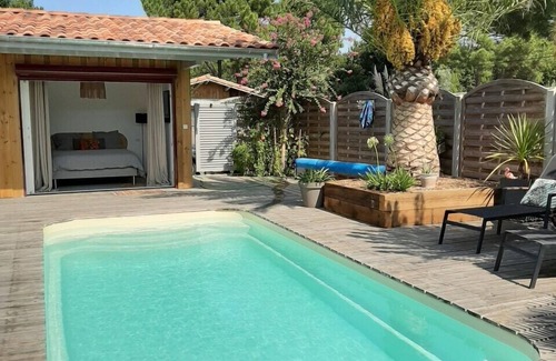 Vacation home with heated pool is located in La Teste-de-Buch. Vacation home with heated pool provides accommodation, featuring Pool, Oceanfront, Fireplace/Heating, among other amenities. This House features Pool, Oceanfront, Fireplace/Heating, to make your stay a comfortable one.