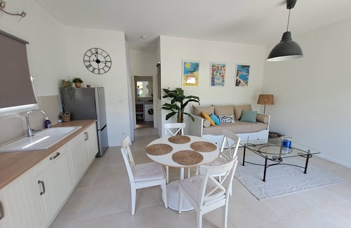 Ideally located in a quiet environment between sea and countryside, less than 500 meters from the beach, shops (restaurants, bars, bakery, supermarket, pharmacy ...) and activities (boat rentals, sailing club and diving ...).