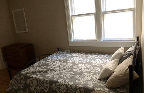 Enjoy preparing meals in an open kitchen - with new appliances and stunning new granite countertops. After a long day, relax or socialize in a comfortable, large living room or enjoy the summer breeze reclining on your front porch /deck. Simple stylish bedrooms with cozy , chic new beds. Workspace for the business traveler. Laundry in the basement. Off-street parking included. Perfect for relocating.
