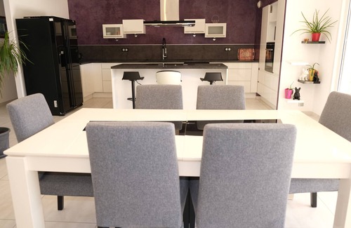 Superb holiday rental with swimming pool in Aureille, in the heart of the Alpilles (Bouches-du-Rhône department, in Provence).A stone's throw from the village, this contemporary house offers an ideal setting for relaxation, surrounded by typical landscapes and hiking trails.Perfectly equipped for 4 people, it features a beautiful terrace, a secure swimming pool, and a landscaped garden.The dream location for nature and authenticity lovers.During your holiday in Aureille, enjoy the preserved charm of this Provençal village and explore the treasures of the surrounding area, from Saint-Rémy to the Camargue. Relaxation and serenity guaranteed!Around Aureille:• Cities of Art and Culture: Avignon (its papal palace), Arles (its arenas), Salon (the Empéri castle)...• Typical villages: Saint Rémy de Provence (its narrow streets, its restaurants, its painters), Eygalières (its charm, its celebrities, its market), Les Baux-de-Provence (its quarries, its image cathedral, its castle)...• The Camargue, where the bullfighting tradition permeates numerous village festivals.• The sea, which is less than an hour away (Marseille, the Calanques, the Saintes Maries...)EXTERIORThis Holiday Rental with swimming pool in Aureille has an enclosed ground of 1200 m².The garden is landscaped. It includes:A swimming pool (Its dimensions: 9m x 5m, a depth from 60 cm to 2m). It is secured by an alarm system. It is accessible by steps. This pool is open from April until the end of October.You will appreciate its beautiful and large terrace of 80 m², all around the Pool.Sunbeds await you there for absolute relaxation!A dining area, shaded by a bioclimatic pergola, fitted with a table and chairs,A barbecueA garden furniture set.An electric car charging pointINTERIORThis holiday rental with a swimming pool in Aureille has an area of 120 m². It is on one level. It is air-conditioned only in the living room and consists of:Open kitchen overlooking the living room (12 m²), fully equipped (Senseo, microwave, induction hob, American fridge, oven, kettle, dishwasher).Spacious living room (48 m²) with connected TV VOD and Netflix, TNT channels, DVD player, home cinema and internet access.Dining room (13 m²) opening onto the living room and kitchen.2 bedrooms:1 bedroom (16.5 m²) with 1 double bed 160,1 bedroom (11 m²) with 2 single beds 80, convertible to 160 bed on request1 bathroom (7.5 m²) with a shower and two washbasins.1 independent toiletGarage available to tenants, with washing machine and tumble dryer.Maximum occupancy: 4 peopleLinen included (towels, tablecloths, tea towels, bed sheets)Included 250 kWh of electricity per week (beyond that there will be billing according to the current rate)Very high-speed fibrePets allowed with a supplement of £50End of stay cleaning: £130Deposit: £800Tourist tax according to the current rateThis is a connected house. Tenants do not have access to the house's control panel. The devices are pre-programmed.ECO-GESTUREThe owners have implemented selective sorting. They water the garden only in the evening to prevent water from evaporating.They use eco-labelled maintenance products.ACCESSIBILITYThis house is potentially suitable for people with reduced mobility. It is all on one level. There are no steps to access it.There is a walk-in shower.No other arrangements have been made