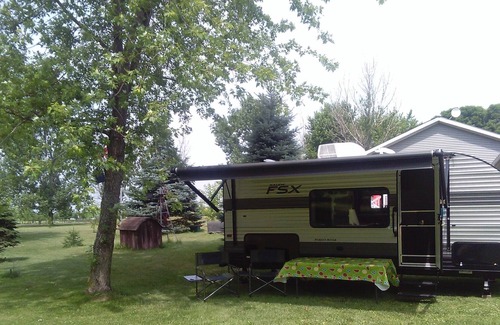 We are minutes away from the action, just 6 miles west of EAA Grounds, Ford Festival grounds, Lifefest, shopping, restaurants, swimming, fishing, many local events and farmers markets. You will have electricity, water, A/C, sink, stove top, fridge, microwave, small bathroom. Queen size Murphy bed on one side and Double size bunks on the other side. Kitchen table folds down also. Sleeps 6-8. See pictures. See Calendar for nightly rates.