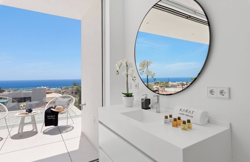 Located in Callao Salvaje on Tenerife's southwest coast, Karat Villa Murano is a 342 sqm 3-story villa accommodating up to 8 guests with stunning Atlantic and mountain views. You will find 3 bedrooms, 3 bathrooms plus an additional toilet, and a living room with a sofa bed for 2 people. The villa features a private fully-equipped kitchen, air conditioning, high-speed Wi-Fi suitable for video calls, TV, washer, dryer, and a dedicated workspace for remote work. Family amenities include a baby bed, highchair, and childcare services.