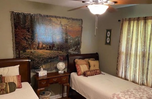 The house is brick, located on an acre of fenced in land in the valley near Lookout Mtn. It is across the street from a local school, but has trees along the fence line that give it some privacy. There is an electric powered gate across the driveway that the host will leave open during your visit. The front door has an electric lock to which the host will provide a code. The house belongs to a retired couple who spend their winters here, so you will find handrails in and near the shower and a lift chair in the living room. Because of health issues there is no smoking or vaping allowed.