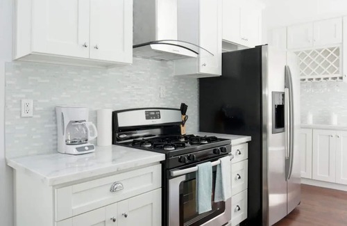 This newly remodelled 4 bedroom 3 bathroom charmer is the perfect location for your next stay. features hardwood floors, a gorgeous stocked kitchen, large gated backyard with fruit trees, Bbq grill. 2 car garage.