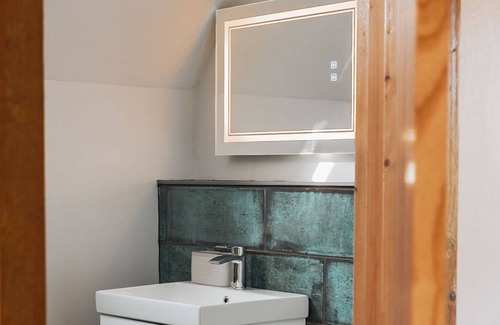 Positioned upstairs on an airy mezzanine is the living area, with amazing views of the Preseli mountain range, here this is the best place to unwind with your feet up and watch the sun go down from the large windows which really do accentuate the view.