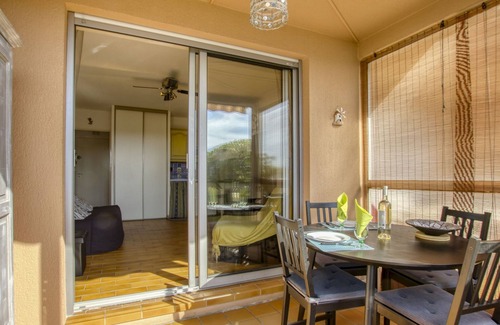 "Vanille", 1-room apartment 20 m2, on the ground floor. Practical furnishings: living/sleeping room with veranda with 1 double sofabed (160 cm), dining table and TV. Exit to the terrace. Kitchenette (mini-oven, 2 ceramic glass hob hotplates, kettle, microwave, electric coffee machine). Shower/WC. Electric heating, air-conditioning. Terrace, small garden 20 m2. Terrace furniture, electric barbecue. View of the sea. Facilities: washing machine. Parking. Please note: smoke alarm. 8300900O9ITNU