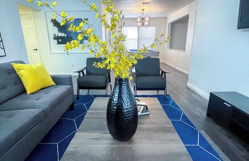 Experience Las Vegas in comfort and style at our beautifully designed 4-bedroom home. Unwind in the spacious bedrooms featuring a plush king bed, two cozy queens, and a full bed—perfect for restful nights after exploring the city. Thoughtful amenities like high-speed WiFi, air conditioning, a washing machine, and an iron ensure a seamless and relaxing stay. With three well-appointed bathrooms offering both showers and bathtubs, you'll enjoy a spa-like retreat each day. Whether you're here for fun or relaxation, our inviting home is the perfect place to recharge and feel right at home in Las Vegas.