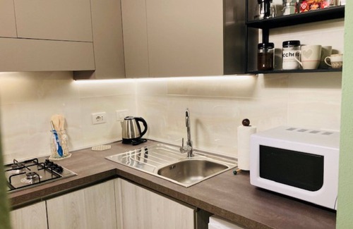 This 1-bedroom, 1-bathroom rental features air conditioning and a desk. Enjoy the free WiFi and TV. Bathroom amenities include a hair dryer, a bidet, and towels. Be sure to check out the kitchen, stocked with a coffee maker, an electric kettle, and a microwave. Other amenities include bed sheets, an ironing board, heating, and a desk chair.