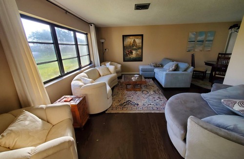 This is our wonderful Florida home. It is in a quiet secluded deed restricted neighborhood, 3 1/2 miles to Venice Beach and 15 miles to Siesta Key. We have a full sized lanai pool with lakefront views. 4 rooms have double sized pocket doors that open into the lanai. The house is designed with many unique spaces for gathering or relaxing. There is a master section with master bedroom and bath and a guest/family section with a queen bedroom, a bunk bedroom and full bath that can be separated with pocket doors. The kitchen opens into the living room with corner tiki bar. There is a formal front room with a beautiful Venice painting and reading corner. We recognize it as living a different quality of life when in town and hope you are seeking the same. This requires a 1-3 plus month lease so we are offering this to those who may be seeking a temporary home or a short term stay. If interested, we can talk.