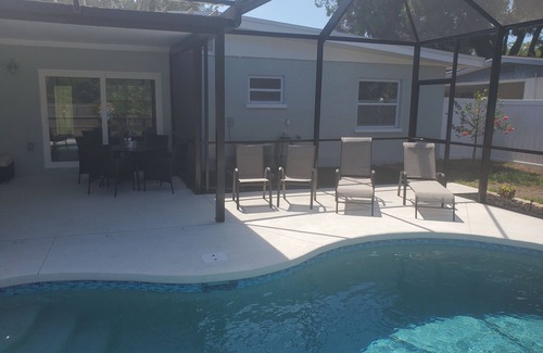 Completely updated and all newer furnishings! Don't miss this opportunity to enjoy a little slice of heaven located just over a mile from historic downtown Venice. A large master and 2 additional good sized bedrooms with an open kitchen, family sized kitchen table and an additional family room make this the perfect floorplan for just 2 or more. A queen sized sleeper sofa is perfect for extra guests. Located just 1.5 miles from Venice beach and Caspersen Beach (the sharktooth beach), you have the best of locations. Enjoy Saturday farmer's markets, pickleball, tennis and basketball located downtown. Live music in the square on weekends with endless opportunities for al fresco dining and live music abounds! Historic downtown Venice allows for shopping adventures as well as many amazing restaurants. We have two security cameras outside for your safety. One at the entrance and one at the back gate. Contact owner for any special requests on length of stay.