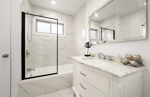In the heart of Montreal's highly sought after cote-saint-luc neighbourhood, this newly-renovated spacious, vibrant, and elegant open-concept apartment features premium quality amenities and appliances for a 5-star stay! From fully equipped kitchen to modern and elegant decor with fully equipped bathrooms.