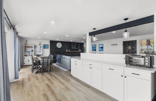This home is a newly updated rambler. 3 bedrooms. 2 bath home. There are stairs to get down to the home. The home sits directly on the beach and waterfront. This home may or may not be suitable for children. Please use your own judgement. There is a small stream that flows through the property out to sea.