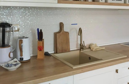 The first apartment is located on the ground floor of the house, consists of living room with kitchen and dining room, three-seater sofa bed, terrace overlooking the courtyard, separate bedroom with double bed and bathroom. The apartment is equipped with all the necessary elements for a comfortable and carefree stay, a safe with a code, two smart TVs with cable channels, air conditioning, wifi, a set of equipped kitchen, underfloor heating, electric fireplaces with flame effects. Apartment capacity 4 persons.