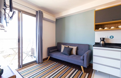 Located in the heart of Vila Madalena, one of the most vibrant, bohemian, artistic and architectural neighborhoods in the city of São Paulo. This minimalist studio has a balcony with an unobstructed view and has everything you need to make your stay perfect and cozy. The building offers laundry facilities for a fee in its common areas, outside the apartment.