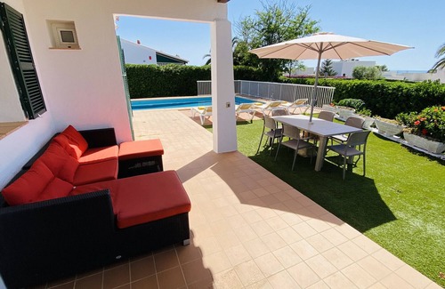 Situation:Villa Áncora is located in Binibeca Vell, just 2 minutes walking from the fishing village and just over 10 minutes walking from the beautiful Binibeca beach. Bars, restaurants and souvenir shops are very close. The village of Sant Lluís is about 7 minutes driving and there is a bus line to Mahón.Exterior:The house has a porch with a table and chairs for outdoor dining and sofas to relax in the shade. It has an artificial grass area with native vegetation and the pool, 7mx3m, is surrounded by terrace flooring. There is a built-in barbecue and a porch for parking in the shade.Interior:The house has been decorated with comfortable pine wood furniture and all rooms are on a single floor: living/dining room, kitchen, laundry room, 1 master bedroom with a complete en-suite bathroom, 2 double bedrooms and 1 complete bathroom.Tourist licence: ET0846ME