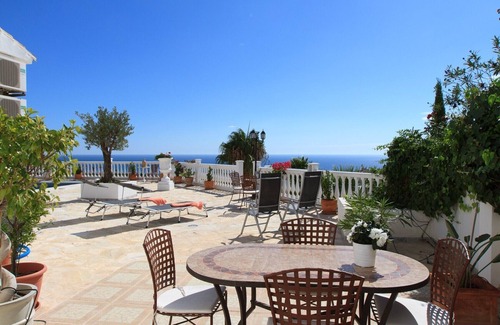 Mediterranean Villa with panoramic views in walking distance to the beach, shopping and restaurants.The villa is ideal for several families or a family with several generations, since there are plenty of outdoor space, several cosy corners and terraces. There are many positive details and facilities in the villa. The villa is located on the outskirts of the cosy Mediterranean town La Cala de Mijas on the Costa del Sol's west side of Malaga, and it does not take 10 minutes to go to the city town centre to get an ice cream or enjoy a good dinner at one of the many restaurants.The entire villa is very nice decorated inside and outside and everything appears nicely and still functional, for you to have a wonderful stay.In front of the house is an Andalucian inspired patio with natural stone and a nice sitting area with patio table and chairs where you can enjoy the peace. Natural stones and cosy corners are a theme thorough the entire plot, where there is ample opportunity to relax and enjoy the stay.The villa has five bedrooms and three bathrooms, two bedrooms and one bath is located in a separate annex with its own private entrance. The annex also contains; a kitchenette including sink and refrigerator.Inside the main villa is a fully equipped kitchen with oven, dishwasher, American fridge with ice cube maker, utility room with washer and tumbles dryer. The kitchen is in open connection with the dining room, which is nicely furnished with dining table with extension plate. The living room is bright and pleasant with comfortable sitting areas, TV, DVD, wireless Internet and air conditioning. Although satellite channels are only on TV in the main house. DVD in anneks.Although the dining room and the living room are very nice, the most will stay on the outside covered terrace with glass walls, which are like an extra room during both winter and summer. The covered patio is furnished just as lovely as the living room with comfortable sitting area, TV, DVD and a round dining table, which offers a compelling view of the Mediterranean and the bay of the village.The bedrooms are all nice decorated with quality furnishing, good mattresses in the beds and all have air conditioning:Bedroom 1)Master bedroom located in the main house includes: double bed, wardrobe, air conditioning, TV, bathroom en-suite, direct access to the terrace.Bedroom 2)Located in the main house contains two joined single beds, wardrobe, air conditioningBedroom 3)Located in the main house contains; 2 joined single beds, wardrobe, deskBedroom 4)Located in the annex includes: double bed, TV, air conditioningBedroom 5)Located in the annex includes: double bed, bookshelf, TV, DVD, air conditioning, exit to the terrace.The bathrooms are nice decorated with beautiful natural colored tiles and all have underfloor heating and hairdryersBathroom 1)Located in the main house, en-suite with Master Bedroom, 2 sinks, towel heater, large shower and heart shaped tub.Bathroom 2)Located in the main house contains a shower.Bathroom 3)Located in the annex contains a shower.The villa continues to surprise and offer in the exterior even more lovely and convenient facilities. Among other things, there are patio tables and chairs outside each bedroom in the annexe, covered outdoor kitchen with refrigerator, bar, sink, dining table, gas grill and Weber charcoal grill and an area that can provide the scenario for many enjoyable evenings in good company.The pool is large 40m2, measuring 8x5 meters with Roman steps. Note that if you have small children, you can order installation of safety nets (www.babysegur.com) around the pool, so children can play safely persuaded on the terraces. Notice that you can stay completely undisturbed on all terraces.In summary, it can be mentioned that there is air conditioning in all bedrooms and living room, wireless Internet networks, satellite TV including Danish, Norwegian, Swedish, English and German channels available on the TV in the lounge and the terrace (not in the bedrooms). The remaining 4 TV have the common Spanish channels and there is a DVD in one of the bedrooms in the annexe.The villa is located less than a half hour drive from the airport and Malaga city. The location is excellent and central if you wish to explorer Andalucia and all its sights and there are also plenty to explorer in the local area. The beach is about 900 meters from the villa and you can see down to El Chaparral's golf courses. El Chaparral's clubhouse is about 3 km from the house and there are about 6 km to the Miraflores golf. But there are plenty of other courses to choose from and just to mention some of the closest; Torrequebrada, Calanova Golf, La Cala Golf, etc.The supermarket is less than 5 minutes from the villa. In the city are found restaurants, shops, cafes, bank, etc. If you want fresh fruits and vegetables, there is a large market every Wednesday and Saturday all year round in the town. There are many good restaurants in the area and the nearest (Restaurant Olé), which by the way is very popular, is located in the urbanization, only few minutes walk from the villa.All together this is a great villa with easy access to ‘everything’ and a superb choice for a great vacation.