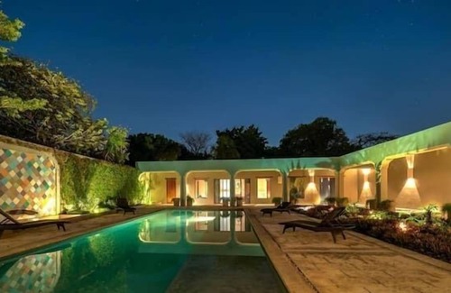 Villa Azulillustrates a masterful use of concrete, accented with antique pasta tiles, flowing in an open floor plan with abundant natural light and ventilation. This spectacular and massive home doesn't disappoint and will be sure to stick in your fond memories as one of the highlights of your visit to this colonial city. Its quiet location is also very convenient to exploring all that historic Merida has to offer.