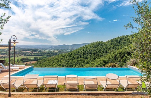 This spacious vacation home with beautiful views, a private panoramic swimming pool, and fortified walls is situated in the area of Città di Castello. The location between Perugia and Arezzo is ideal for exploring both Umbria and Tuscany or just relaxing by the pool with your family or friends.