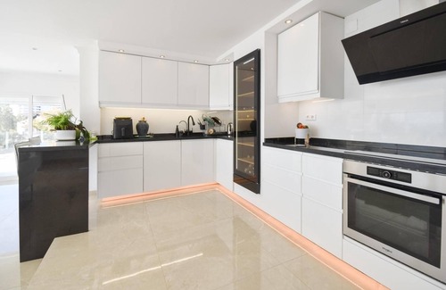 Overlooking the Mediterranean Sea, the villa Bali Málaga in Fuengirola impresses guests with its fantastic views. The 4-storey property consists of a living room, a well-equipped kitchen, 3 bedrooms and 4 bathrooms and can therefore accommodate 6 people. Additional amenities include high-speed Wi-Fi (suitable for video calls) with a dedicated workspace for home office, a smart TV with streaming services, air conditioning as well as a washing machine. A baby cot and a high chair are also available. This villa offers an array of amenities including a private pool, garden, terraces, barbecue, and outdoor shower.