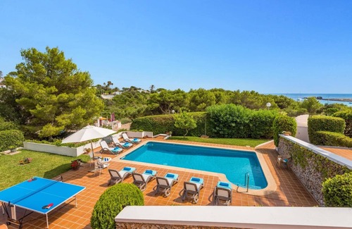 Villa Binibeca Beach is set in a prime position overlooking Binibeca Beach between the fishing villages of Binibeca Vell and Cala Torret. Surrounded by colourful flowers and a large lawn, enjoy the fabulous sea views from your private pool and from the balconies. This property is a Spanish oasis with the house itself divided into the main house and the annexe, both with 3 bedrooms and 2 bathrooms and a kitchen. WiFi and air conditioning/heating is included in the bedrooms.