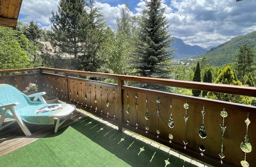 Duplex house, 200m², classified 2 stars for 6 people is located in a quiet housing estate, on the heights of Briançon offering a panoramic view! Facing south, it has a small garden and a terrace of around 31m². She is composed : - an entrance with separate WC - a living room with fireplace - a dining room - a well-equipped open kitchen: dishwasher, oven, capsule coffee maker, 4 induction hobs... - a cellar with washing machine and microwave Upstairs : - a bedroom with a 160 double bed and balcony - a bedroom with a 140x190 double bed - a mezzanine with a double bed 140x190 - a bathroom with shower and bathtub - a separate toilet Parking spaces in front of the house. Private unfenced garden. Free WIFI. The ground floor of the house (south side is occupied and private) Our animal friends are not accepted. Non-smoking house The advantages of this holiday home: Beautiful volume, bright and warm house. Cleaning with disinfection included. Unless stated, services such as cleaning, bed linen, towels etc. are not included in the price of this rental. If pets are allowed (information in the advertisement), charges may be applicable. Only equipment mentioned in this advertisement are present. Equipment not mentioned are not considered to be present.