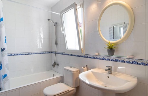 Construida en una sola planta, esta encantadora villa a 400 metros de la playa te ofrece todo lo necesario para unas inolvidables vacaciones. 3 dormitorios y 2 baños completos. Aire acondicionado en todos los dormitorios y salón. Cocina totalmente equipada. WiFi.