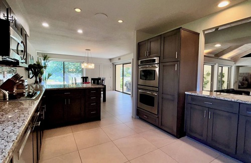 Experience the unparalleled luxury of this 2-bedroom (plus a convertible office/den), 3-bath Rancho Mirage vacation rental at the iconic Mission Hills Country Club. Villa Cha Cha has been completely renovated with pristine porcelain tile flooring, fresh paint, and an evolving collection of modern art, this property promises an indulgent stay. Golf enthusiasts will relish the nearby access to globally recognized golf courses, while all guests will adore the chic decor, state-of-the-art amenities, and mesmerizing backdrop of the San Jacinto Mountains.
