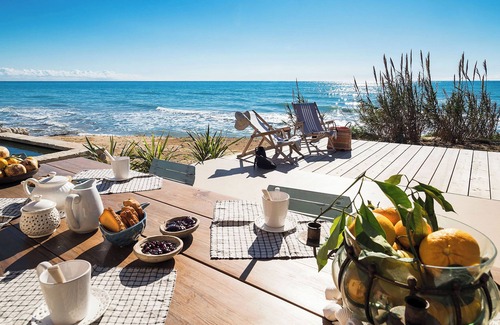 The stunning Villa Dalle Sirene is located in an exquisite position, directly on the beach, in Santa Maria Focallo, on the way from Pozzallo to Pachino. A perfect holiday home for a truly memorable beach holiday. A Mediterranean garden with heated plunge pool, surrounds the large, panoramic terraces. The recent renovation of the villa has been commissioned by a well-known interior designer, who has given preference to locally sourced materials and traditional craftsmanship and has creatively used antique pieces. A minimalist, chic interior, in harmony with the architecture, colours and features of the island, give the house a very special flair, a welcoming ambience, equipped with every modern comfort: Air conditioning, Wi-Fi, satellite TV, Hi-Fi system, washing machine, dishwasher and BBQ. There are two romantic bedrooms, one of which is accessible from the outside, two bathrooms and a light-flooded living room, with panoramic windows reaching up to the ceiling, offering a splendid view of the beach and the sea.