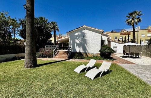 Exclusive second line beachfront villa for 9 guests with private garden & pool, and porch-terrace with outdoor furniture, BBQ y parking de gran capacidad.