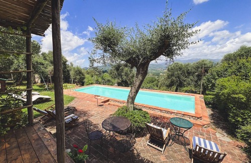 villa with 4 double bedrooms, 3 bathrooms and 1 service bathroom. Pool, garden and a beautiful view of Lucca.Perfect solution for family or friends who wants spend holiday in peace and relax !Enchanting rustic of 1700 completely renovated, surrounded by the hills of Lucca 6 km from the historic center of Lucca. Strategic position to reach the main wonders of Tuscany.With a breathtaking view you can enjoy a Tuscan holiday in the countryside in a beautiful location: wi-fi, swimming pool, barbecue, garden to dine outdoors and spend unforgettable momentsInside the house you will be welcomed by the typical Italian furniture characteristic of countryside of Lucca.The garden allows you to experience unique sensations in its thousand suggestive corners: the bench under the olive tree to enjoy the view, the antique tables to have breakfast with nature, the swimming pool with the '700 lampposts, excellent for swimming, with deck chairs and sun loungers, ping pong among the olive trees and much more will envelop your senses at Villa dell'Ortensia.The Villa is 220 square meters, elegant in all its finishes, is spread over 3 floors:Ground floor: the lounge with sofas and tables and chairs, unique artistic pieces reflect the taste of the owner, an art dealer from nearby Pietrasanta who brought his sensations to the interior of the house.A kitchen suitable for cooking any tasty Tuscan recipe, bathroom are on the same floor.First floor: 3 bedrooms, 2 double bedrooms and 1 with two single beds. The murals that give character to the room are very particular.A large bathroom and a service bathroom are available to guests. outside, in another part of the house there is the 4 bedroom , bathroom and the laundry area.villa, pool, garden in exclusive.The owner lives in the annex.The owner is very discreet and will let you experience the villa in your privacy. he is often away on business.The entrance to the gate is shared with himMeatiPisa (20km), Firenze (60Km), Versilia (25km), Siena (120km).Dirt road uphill but easy to travel to reach the Villa which is located in a beautiful area of the city, on top of a hill with a unique view. The car is necessary to reach restaurants and shops.The last part of the road (600 meters) are uphill road with some curves. Made the first time you will get used to doing it without problems!Heating On request: 30 euros per day.Pet only on request: 80 euro per week