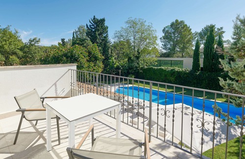 Villa Esquina is a beautiful holiday retreat nestled at the base of the UNESCO Tramuntana mountains in Pollensa's tranquil and highly sought-after La Font area. This exceptional family home has undergone complete refurbishment and boasts exquisite landscaping. It comfortably accommodates up to 10 guests with its five spacious bedrooms, each featuring its own en-suite bathroom. The villa offers three balconies, all providing breathtaking views of the surrounding area and a magnificent 15-metre saltwater pool that can be heated for your comfort.