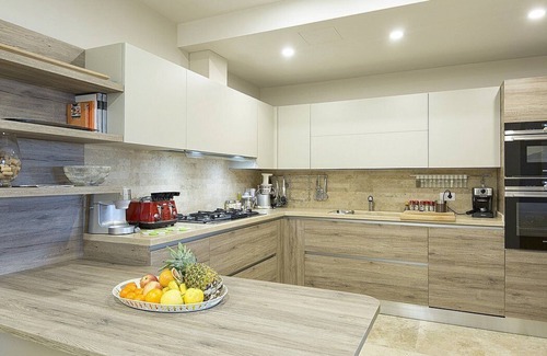 The swimming pool is 6 meters (20 feet) large by 12 meters (39 feet) long, 1.45 meters (4.8 feet) deep. It is an infinity pool, can be heated if requested (additional cost applies -- please enquire with our staff) and is filled with sea water. The area is equipped with sun umbrellas, deck chairs, sun loungers and an external shower. From the swimming pool you will enjoy a broad view of the greenery and of the hills. You will share the pool with guests staying at 2 other apartments. The swimming pool is open from the beginning of April until mid-October.
