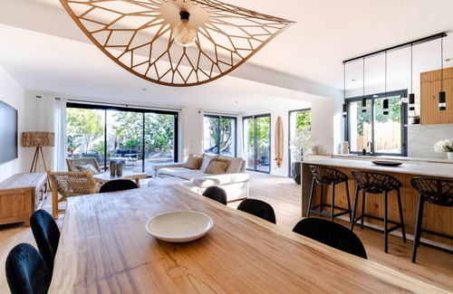 The refined decoration will seduce you as well as the quality of the equipment: fully air-conditioned, 200 m² of terrace, heated swimming pool, jacuzzi, plancha, table tennis, 2 paddles, 3 parking spaces ...