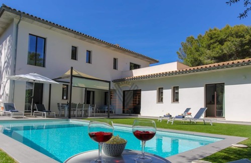 Holiday villa with private pool and garden, very close to the beach, located in the urbanization of Manresa, Alcudia, north of Mallorca.