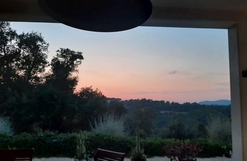 In front of the villa there is a large paved space, ideal for dining and staying outdoors, shaded by maritime pines and embellished with vases of flowers and aromatic plants. Large porch facing west, with small outdoor kitchen and table for up to 12 people.