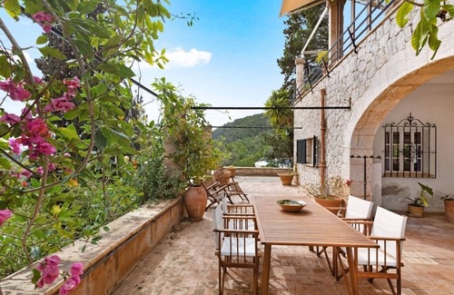 Fantastic Majorcan house located in the residential area of Génova, in Palma de Mallorca, impresses with its outdoor area, its views and its magnificent architecture. This charming house is decorated with warm and cozy colors, located in the middle of nature, a few kilometers from the center. It has a spacious living room with large windows, a fully equipped kitchen, separate dining room. It offers 5 bedrooms, 4 bathrooms and can accommodate up to 8 people. On the upper floor there are two rooms, on the middle floor there are two rooms, on the ground floor there is one room and there is an exterior room. Facilities also include Wi-Fi, Television. It has heating and air conditioning. Outside you will find a terrace furnished with tables and chairs to enjoy meals outdoors, a barbecue where you can prepare your meals on the grill and a fantastic pool area with sun loungers and parasols. An environment to relax and leave behind the stress of everyday life.It is a perfect place for a family vacation or with a group of friends.It has free private parking for several vehicles