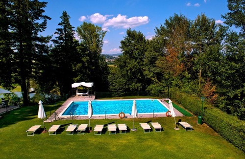 Inside the garden there is a beautiful pool (6 x 12 m, depth 1.50 m), open from mid-April to October, and equipped with: hydromassage, counter-current swimming, sunbeds, parasols, and external shower.
