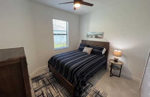 Resort Living at its finest, newly built, and furnished Villa of Fort Myers, just minutes from the airport, Jet Blue Stadium, golfing, all expressways, and close to beaches. This cozy 1600 sq. ft. condo offers 2 full bedrooms, 2 full bathrooms with a flex room Den/Office with futon, extended Lania, view of the water, and a constant breeze on your private patio. The community amenity center has resort style pools for all ages, basketball, pickleball, bocce, fitness center, 2 restaurants and much, much more!! You name it, they have it! This is a ground level villa, with attached garage.