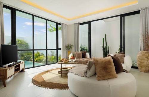 Inspired by the Indonesian word "Kalem," meaning "calm" or "serene," Villa Kalem lives up to its name as a tranquil retreat in the heart of Berawa, Canggu. This luxurious four-bedroom villa offers a unique blend of modern minimalist design with a touch of desert-inspired tropical style. With sleek white walls, natural wooden accents, and cactus-themed decor, the villa creates a stylish, relaxed atmosphere. Located close to popular hotspots like Atlas Beach Fest and Finns Beach Club, Villa Kalem provides an ideal setting for those seeking both serenity and easy access to Canggu’s vibrant scene. A private driveway and secluded parking area ensure privacy and ease from the moment you arrive.