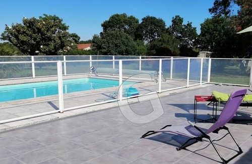 THE JONCHERE. Holiday house for 6 people with private swimming pool 10 km from the beach of La Tranche sur Mer, 3 km from the shops of Angles. The house includes an entrance, a fitted and equipped kitchen (induction hob, fridge, dishwasher, Tassimo coffee maker, etc.), a living room, a first master bedroom with a 140 bed and its bathroom. water and integrated WC, a second bedroom with a 160 bed and the third bedroom with a 120 bed. A bathroom. Separate WC. A laundry room with an American fridge, washing machine and a desk. Outside, you have a terrace with its own garden furniture, parasol, seating area. A private heated swimming pool secured by a fence. Private parking space. OPTIONAL SERVICE: Cleaning charge at the end of the stay: 125 € Information: Dwelling house under construction nearby. Unless stated, services such as cleaning, bed linen, towels etc. are not included in the price of this rental. If pets are allowed (information in the advertisement), charges may be applicable. Only equipment mentioned in this advertisement are present. Equipment not mentioned are not considered to be present.