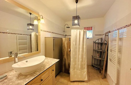 Outside, a large terrace and a private swimming pool offer you moments of relaxation and refreshment during the months of May to September. The wooded grounds surrounding the villa create a peaceful and preserved setting for a peaceful holiday. A wood stove adds a warm ambiance to chilly evenings.