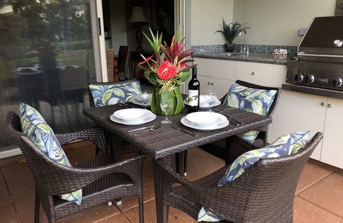 Villa Lava has been professionally furnished, custom painted in soothing and relaxing hues and has wonderful island-living wall art. The KITCHEN has warm cherry cabinets, granite countertops, stainless steel appliances and is fully equipped for your every cooking and entertaining need. The shops at Mauna Lani are walking distance and includes a Foodland Farms grocery store / specialty market with an excellent selection and local island pricing! Relax on the lanai off the dining room, enjoy a cocktail, grill lunch or dinner on the Viking gas BBQ grill and eat al fresco. Whatever you choose you will be doing it in style!